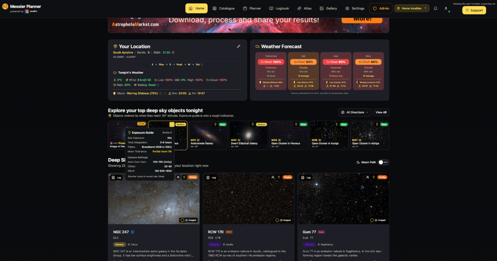 Messier Planner is free to use today, tomorrow, and long into the future. There are some ads on there that will hopefully help to fund it too. There are no “upgrade now” banners screaming at you. I wanted it to feel like a quiet corner of the internet where astronomy still feels calm and purposeful — a tool you return to because it helps, not because it nags.