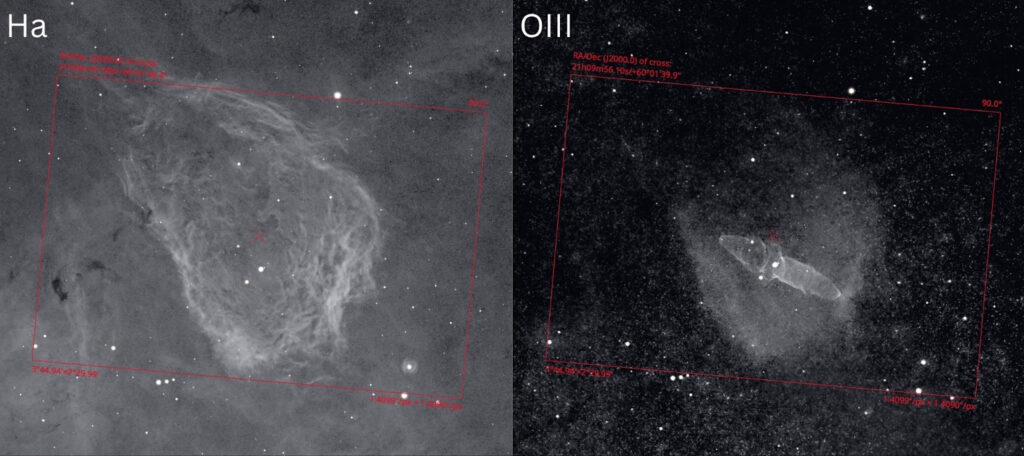 The benefits of Aladin Lite are multifaceted. If you are looking for inspiration and just want to explore the sky, there is no need to open a heavy piece of software. Aladin Lite runs smoothly within your web browser, and you can quickly and easily hone in on a given object and understand its bands of emission. When framing an image, most tools default to a survey like DSS2. While this is a good survey, you cannot get a good feel for a target if it is faint in broad band but strong in narrow band. For a target such as WR134 for example (type WR134 into the Aladin Lite search box and see the result) there is very little signal in DSS2, and this makes it hard to get a sense for the target. Aladin Lite, however, makes it very simple to change the survey, and this makes it possible to view a target in the bands where it emits the most light. Looking at WR134 in an OIII survey is a night and day difference compared to DSS2.